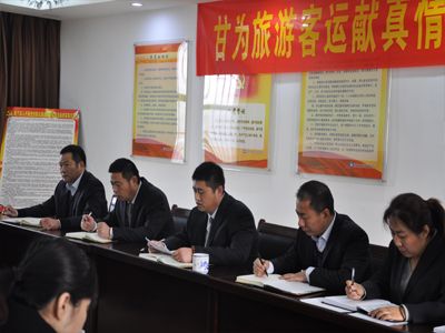 2015年1月16日上午9點(diǎn),集團(tuán)黨委領(lǐng)導(dǎo)對公司2014年度工作進(jìn)行實(shí)地調(diào)研。泰山旅游集團(tuán)黨委書記韓峰同志一行六人參加此次調(diào)研會(huì)議。會(huì)議首先由公司工會(huì)主席王樹強(qiáng)同志代表領(lǐng)導(dǎo)班子對公司2014年度工作情況及2015年工作計(jì)劃作詳細(xì)匯報(bào),隨后公司各分管負(fù)責(zé)人對各項(xiàng)分管工作作簡要匯報(bào)。